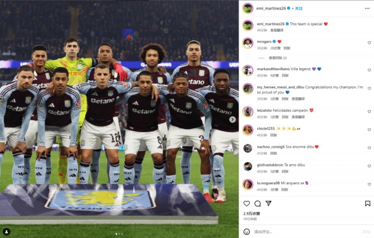 1月30日訊 歐冠小組賽第8輪,維拉主場(chǎng)4-2擊敗凱爾特人,積分榜排在第8位直通淘汰賽。本場(chǎng)比賽大馬丁為維拉首發(fā)踢滿全場(chǎng),賽后他在社媒曬照慶祝球隊(duì)直通歐冠淘汰賽,并配文寫(xiě)道:“這支球隊(duì)很特別?!?/p> 本文標(biāo)簽: 足球 英超 阿斯頓維拉 歐冠 五洲 蘇超