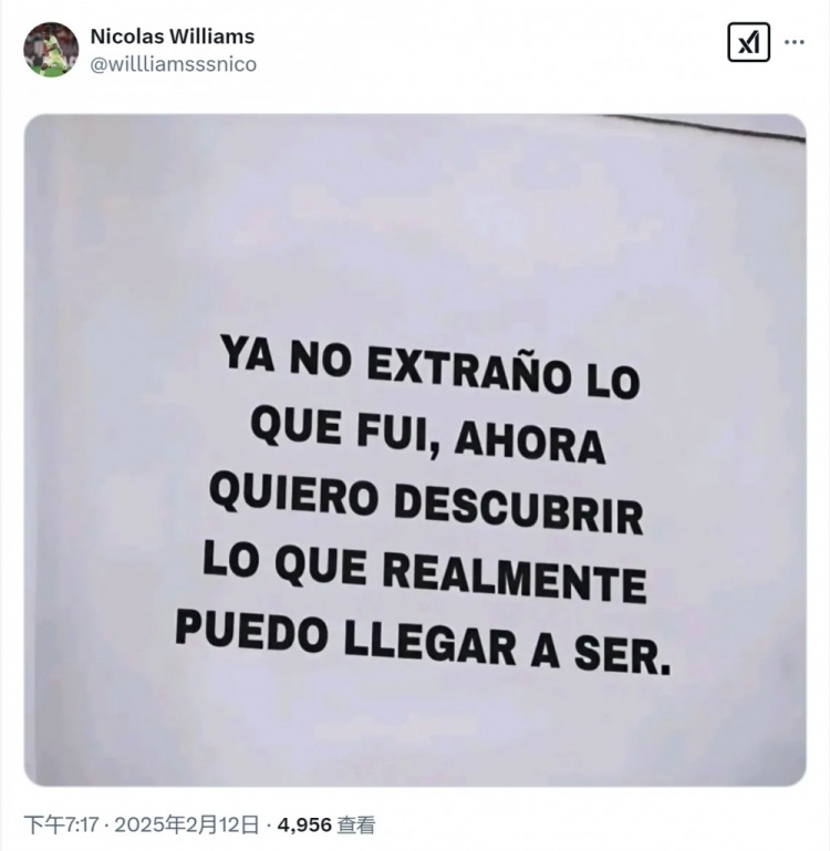 尼科-威廉姆斯社媒曬出的內(nèi)容為:“我不再懷念過(guò)去的自己,現(xiàn)在我想探索自己真正能成為什么樣的人?!?/p>