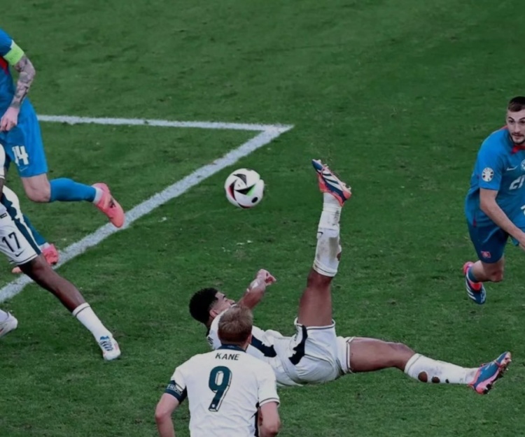 2024年歐洲杯英格蘭與斯洛伐克的1/8決賽上,貝林厄姆倒鉤破門,那一刻,他和他偶像齊達內(nèi)一樣出眾的身體柔韌性、協(xié)調(diào)性展露無遺。