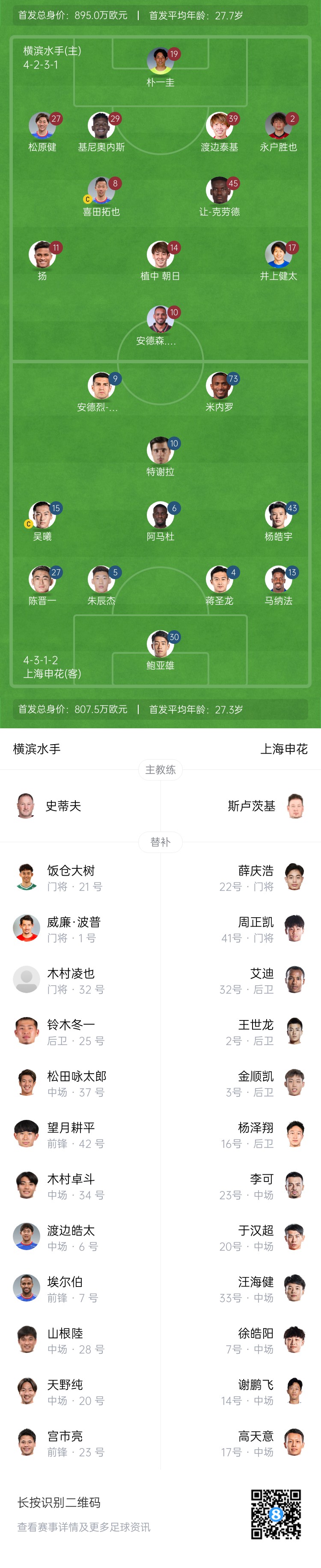 2月12日訊 北京時間今晚18點,亞冠精英聯(lián)賽東亞區(qū)第7輪,上海申花前往客場挑戰(zhàn)橫濱水手,賽前兩隊公布首發(fā)陣容。申花18歲小將楊皓宇繼超級杯首發(fā)后,本場再次得到首發(fā)機會。