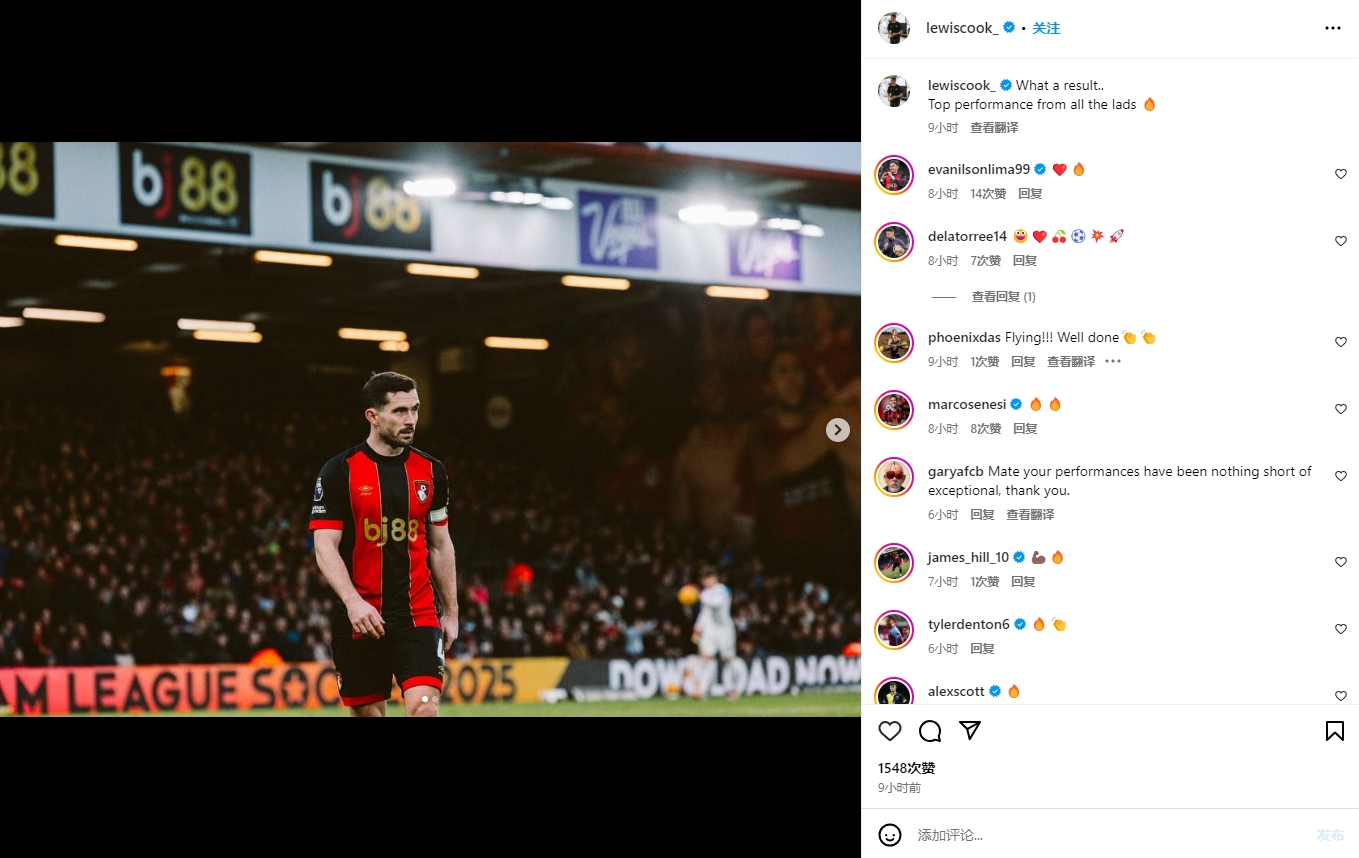 1月26日訊 5-0大勝諾丁漢森林后,伯恩茅斯中場球員庫克接受了采訪。