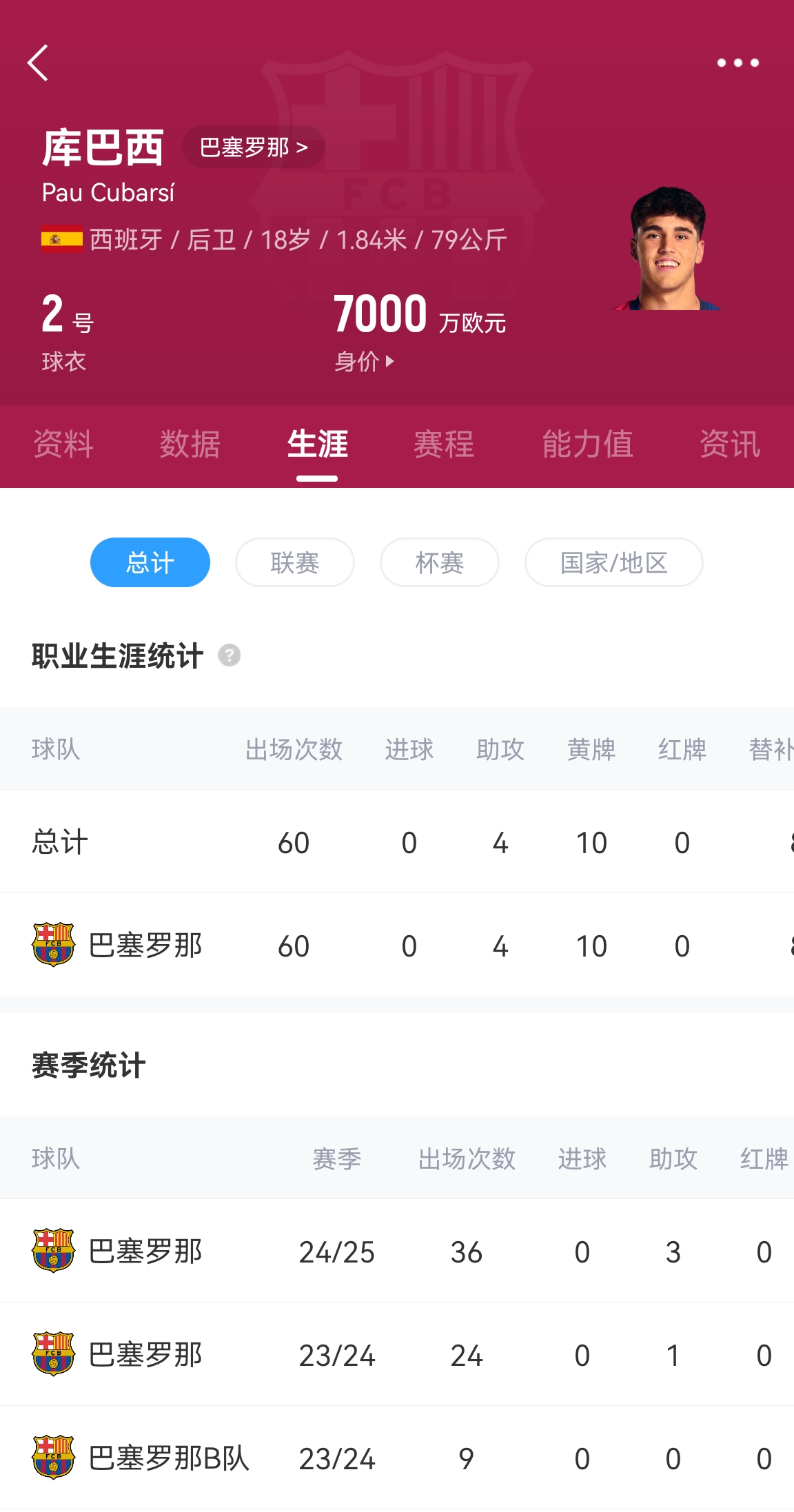 02月13日訊 官方消息,巴薩與18歲中衛(wèi)庫巴西完成續(xù)約,新合約至2029年。庫巴西是拉瑪西亞出品,在這個(gè)年紀(jì)已經(jīng)為巴薩成年隊(duì)出場(chǎng)了60次,他的身價(jià)已經(jīng)達(dá)到了7000萬歐元。此前巴薩分別與21歲費(fèi)爾明、25歲阿勞霍、22歲杰拉德-馬丁、22歲佩德里、20歲加維完成了續(xù)約。 本文標(biāo)簽: 足球 西甲 巴塞羅那