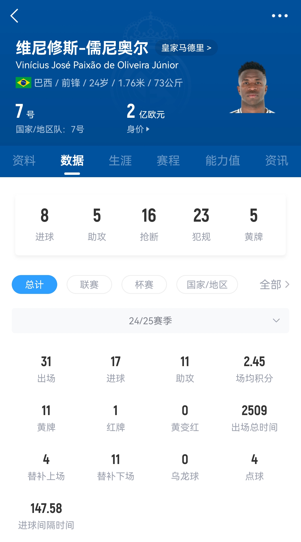 02月13日訊 當(dāng)?shù)貢r(shí)間昨天深夜,馬卡報(bào)再度爆料沙特方面向維尼修斯提供5年10億歐元報(bào)價(jià)的新聞,維尼修斯的續(xù)約問題再度引發(fā)了關(guān)注。