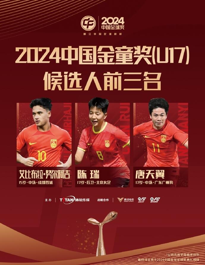 02月13日訊 2024中國(guó)金球獎(jiǎng)?lì)C獎(jiǎng)儀式將于2月13日在杭州舉行,現(xiàn)場(chǎng)播放的金童獎(jiǎng)(U17)三人候選宣傳片顯示,近期陷入出軌、賭球風(fēng)波的唐天翼被移除,魏祥鑫“遞補(bǔ)”。