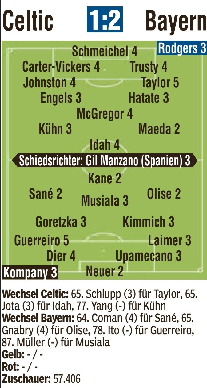 2月13日訊 歐冠淘汰賽附加賽首回合比賽,拜仁客場2-1擊敗凱爾特人,德國媒體《圖片報》對球員進(jìn)行了評分,凱恩、薩內(nèi)、奧利塞、諾伊爾、前田大然2分最高。