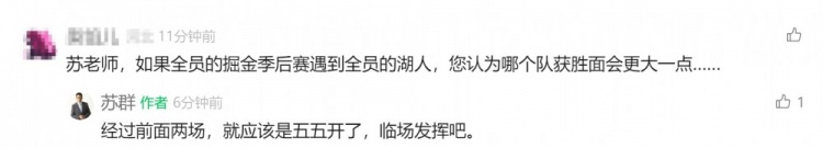 3月20日訊 今日NBA常規(guī)賽,湖人120-108戰(zhàn)勝掘金。本賽季雙方交手戰(zhàn)績來到了2-2。網(wǎng)友在蘇群公眾號評論區(qū)評論道:“蘇老師,如果全員的掘金季后賽遇到全員的湖人,您認(rèn)為哪個隊(duì)獲勝面會更大一點(diǎn)……”蘇群回復(fù)道:“經(jīng)過前面兩場,就應(yīng)該是五五開了,臨場發(fā)揮吧?!?/p> 本文標(biāo)簽: 籃球 NBA 湖人 掘金
