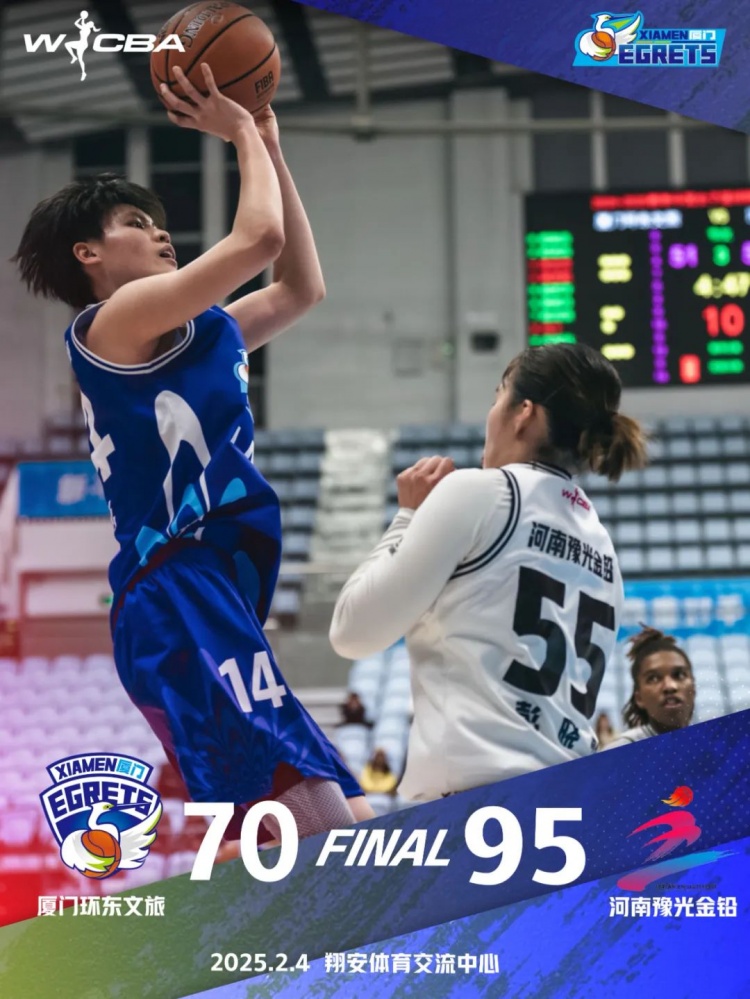 末節(jié)決戰(zhàn),黃柔甄接連突破內(nèi)線取分,廈門女籃上來將分差縮小到4分打停河南。暫?;貋恚瑢O麗翻身中投幫助河南女籃緊急止血,加儂接連攻擊內(nèi)線后陳薇安三分命中穩(wěn)住雙位數(shù)領(lǐng)先。隨后廈門女籃進(jìn)攻斷電,7分多鐘僅得1分,河南女籃抓住機會拉開20分以上領(lǐng)先,最終廈門環(huán)東文旅70-95不敵河南豫光金鉛。