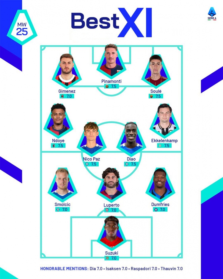 前鋒:S-希門尼斯(米蘭)、皮納蒙蒂(熱那亞)、蘇萊(羅馬)