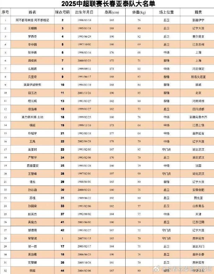 2025長春亞泰大名單出爐 第12人繼續(xù)專屬12號 全隊平均年齡為26.9歲