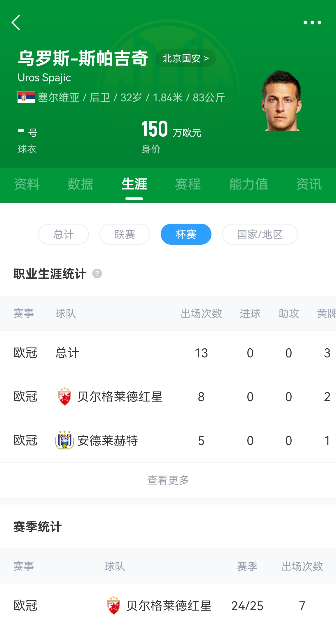 據(jù)媒體人爆料,斯帕吉奇是先與紅星解約再加盟國安的,也就是說國安沒有為他付出任何轉(zhuǎn)會費。