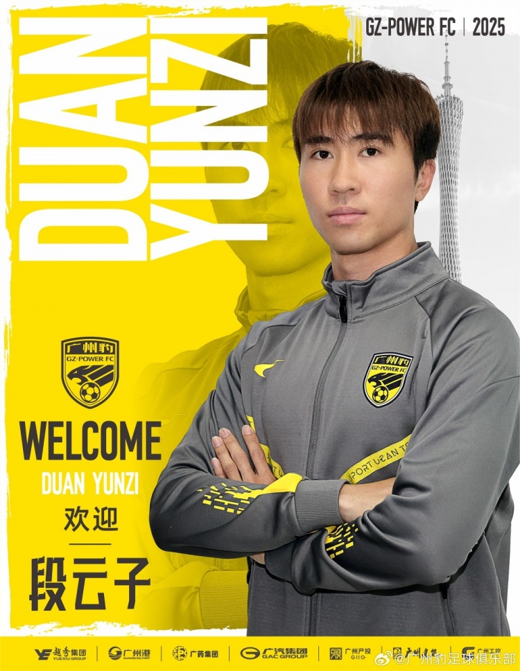 2月18日訊 廣州豹足球俱樂部官方宣布,段云子正式加盟球隊(duì)。