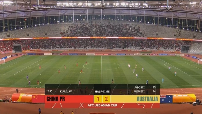 澳大利亞U20出場陣容:12-亞歷山大-羅賓遜、5-塔爾迪拉、13-赫林頓、14-利索拉伊斯基、7-丹尼爾-本尼、8-尤爾、15-皮爾曼、16-蘭達佐、20-阿戈斯蒂、11-昆托、22-麥丁-梅梅蒂