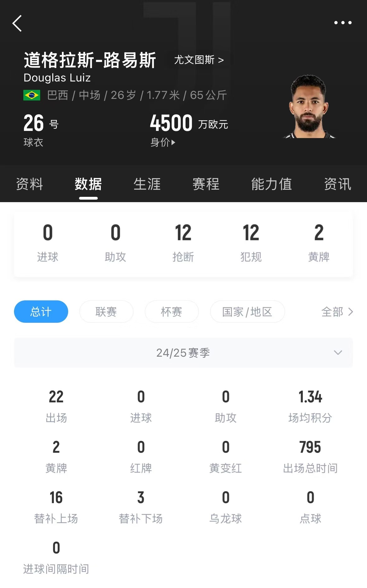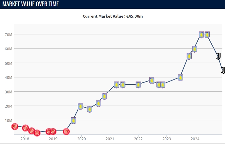 尤文在去年夏天花費5150萬歐元從維拉引進這名中場,本賽季他為尤文出戰(zhàn)22場比賽,沒有取得進球和助攻。值得一提的是,在加盟尤文以后,他的德轉身價已由原先的7000萬歐元,跌至目前的4500萬歐元。