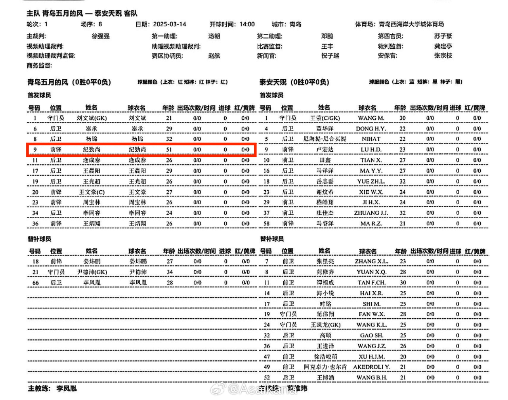 03月14日訊 北京時間今日14:00,足協(xié)杯正賽第一輪比賽將打響。中冠球隊青島五月的風將對陣中乙球隊泰安天貺。根據(jù)首發(fā)名單,青島五月的風投資人、51歲的紀勤尚將先發(fā)出戰(zhàn),擔任前鋒。 ??? 本文標簽: 足球 中超 中國足球 中甲 中乙 泰安天貺