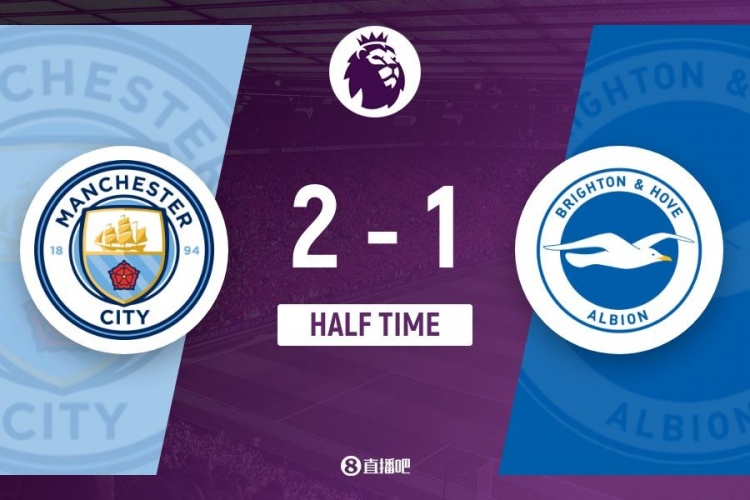 上半場傷停補(bǔ)時(shí)4分鐘,半場結(jié)束,曼城暫2-1布萊頓。