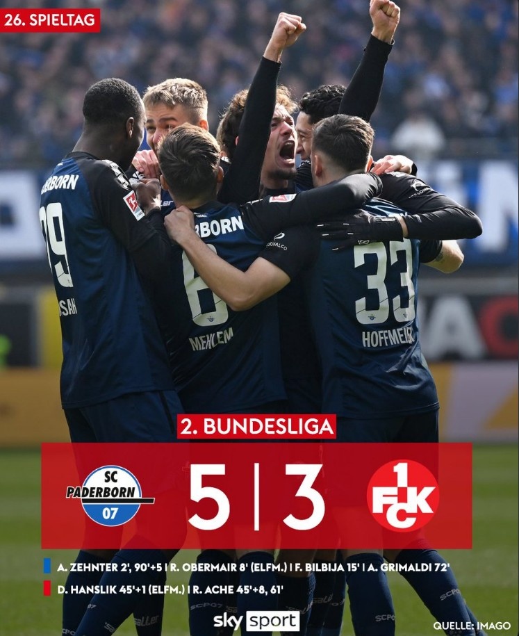 3月15日訊 在德乙第26輪一場強(qiáng)強(qiáng)較量中,帕德博恩5-3擊敗凱澤斯勞滕。本場比賽帕德博恩在開場前15分鐘就取得3-0的領(lǐng)先,但是凱澤斯勞滕頑強(qiáng)的在61分鐘將比分扳為3-3平,不過帕德博恩在第72分鐘和補時階段又連入兩球,最終拿下比賽勝利。本輪過后帕德博恩反超凱澤斯勞滕升至第二位,距榜首漢堡3分。 本文標(biāo)簽: 足球 德甲