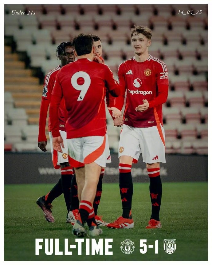 3月15日訊 在當(dāng)?shù)貢r(shí)間周五晚間進(jìn)行的英超二級聯(lián)賽中,曼聯(lián)U21隊(duì)主場5-1大勝西布朗U21隊(duì),位居積分榜第6位。