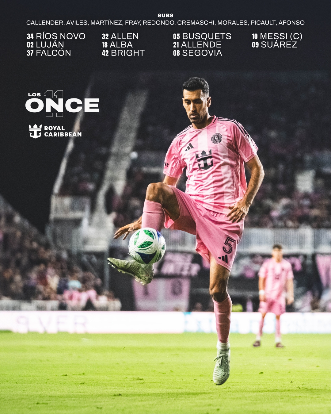 邁阿密國際首發(fā):34-羅科-里奧斯、2-盧揚(yáng)、37-法爾肯、32-阿倫、18-阿爾巴、42-楊尼克-布萊特、5-布斯克茨、21-阿連德、8-特拉斯科、10-梅西、9-蘇亞雷斯